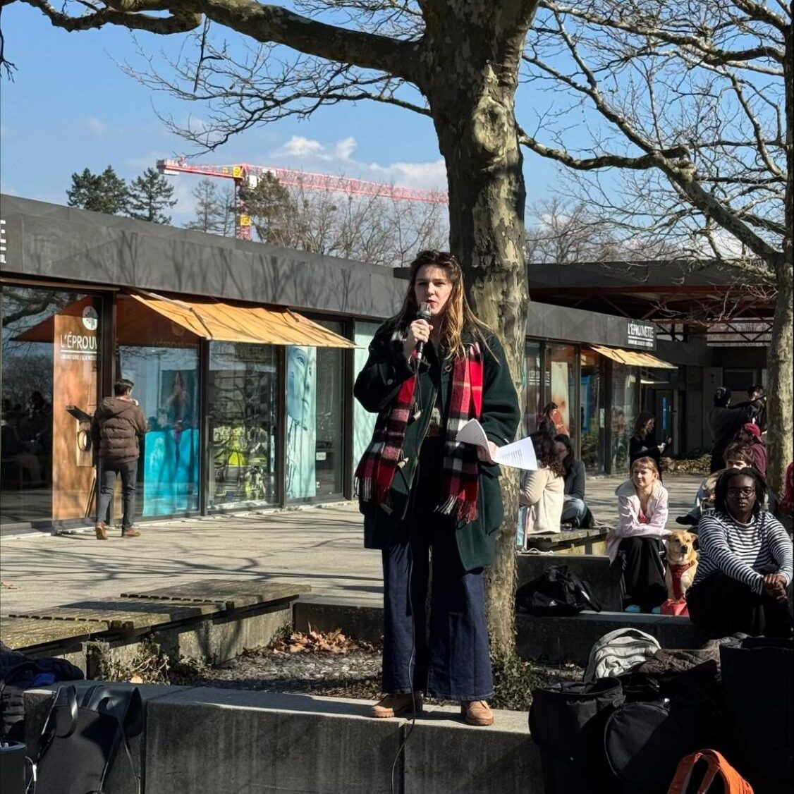 In front of the Amphimax of the University of Lausanne, mid-level staff protested against the severe consequences of the planned budget cuts. Philippine Milward, representative of ELSA (EPFL Scientific Staff Association), emphasized the damage on Switzerland’s reputation and innovation.